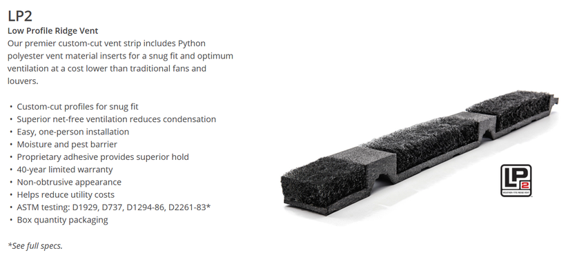 Python single layer vent our recycled polyester single layer ridge vent can be used under ridge caps ridge shingles and as a fascia vent to keep attics cooler in summer and dryer in winter.